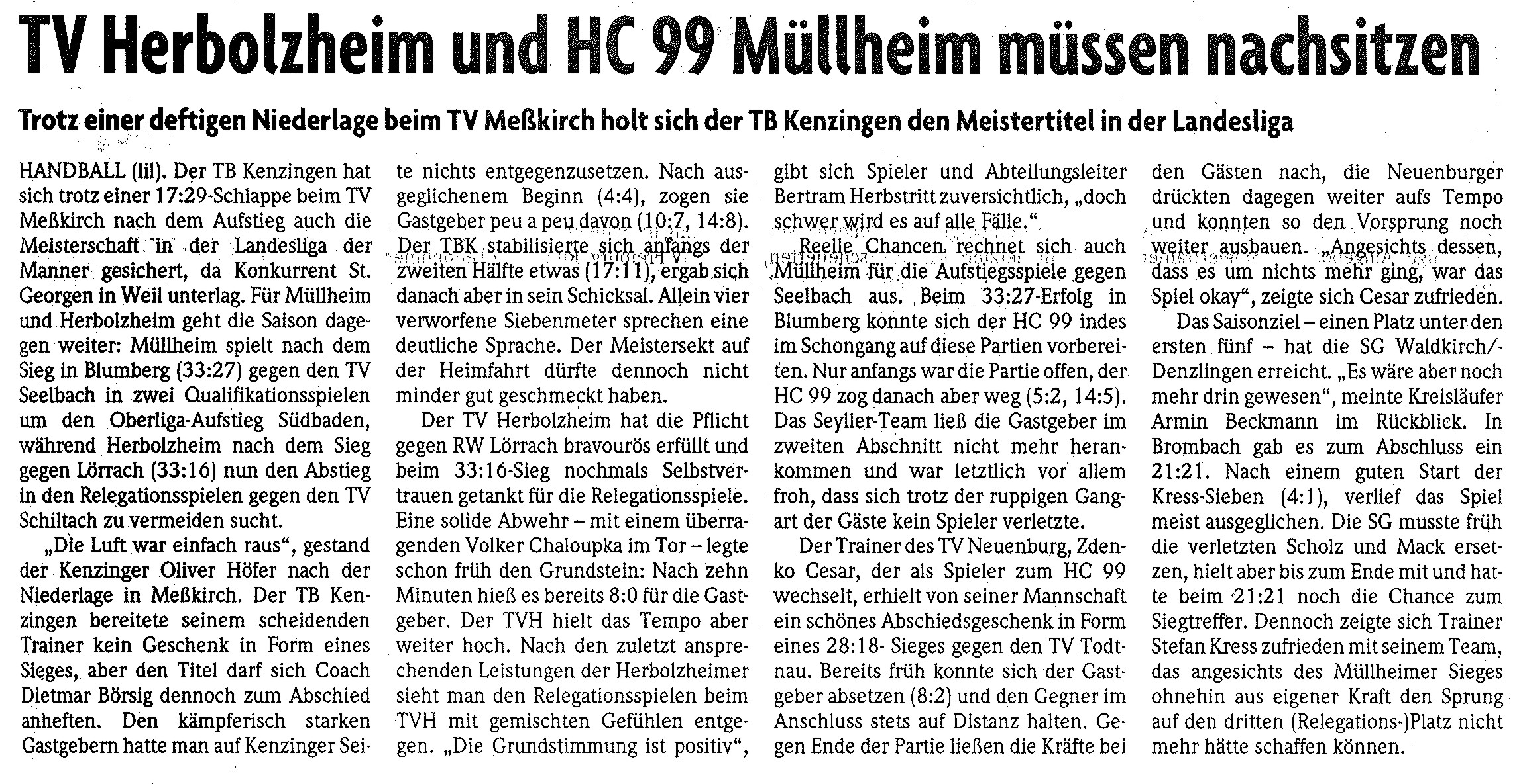 Handball in Kenzingen vor zehn Jahren !